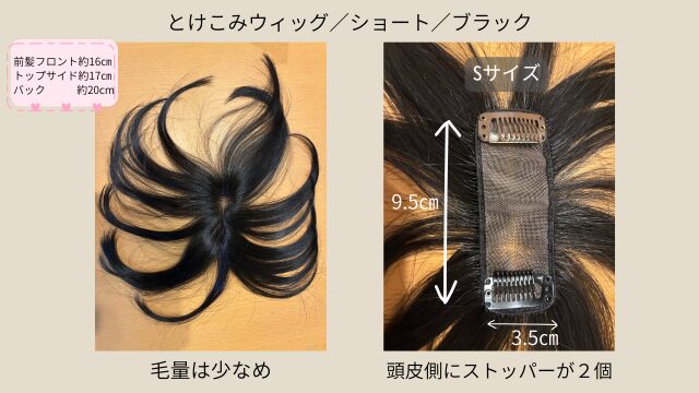 今回私が着用していたのは「(長さ)ショート/(カラー)ブラック/(ベース)Sサイズ」です。