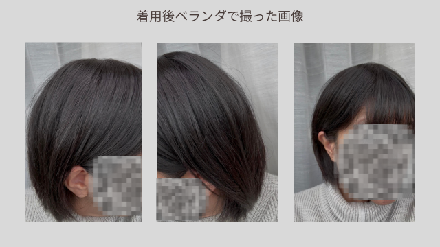外の光の下で確認してみましたが、いかがでしょうか? 言われなければ、ウィッグをつけていると分からないですよね。